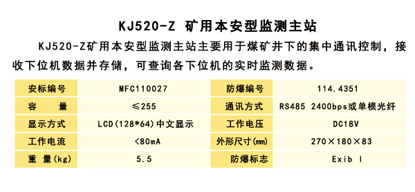 KJ520-z矿用本安型监测主站▼监测