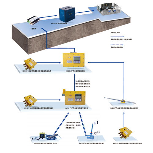 该系统是用于顶板安全的监测系统,系统采用了开放性的网络结构;